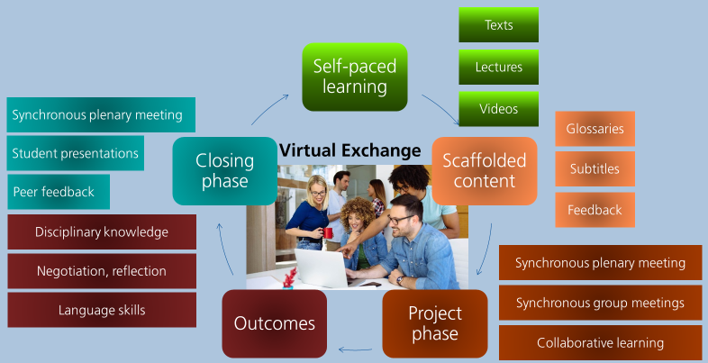 What’s more, this is a hybrid course that starts with a few weeks of self-study followed by a series of synchronous sessions with participants from the two participating universities: FernUniversität in Hagen (Germany) and Universidad Nacional de Educación a Distancia (Spain). This is a methodology known as Virtual Exchange as outlined in this video (run time: 01:57 mins).